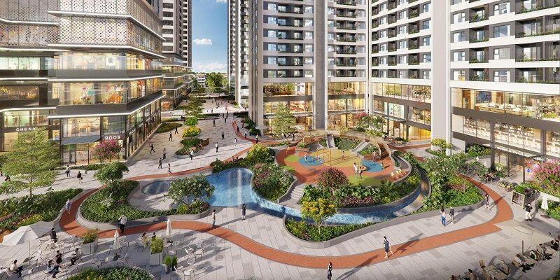 Hồ bơi chân mây mang đến trải nghiệm thư giãn tuyệt vời cho cư dân, đặc biệt vào những ngày nắng nóng. Khu mua sắm và trung tâm thương mại sẽ đáp ứng nhu cầu mua sắm hàng ngày và giải trí cho cư dân. Phòng gym và sân thể thao đa năng sẽ góp phần nâng cao sức khỏe và thể chất cho cư dân, trong khi công viên nội khu và vườn hoa nhiệt đới tạo ra không gian xanh, giúp cư dân thư giãn và hòa mình vào thiên nhiên.